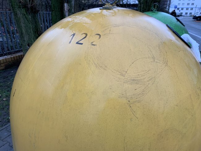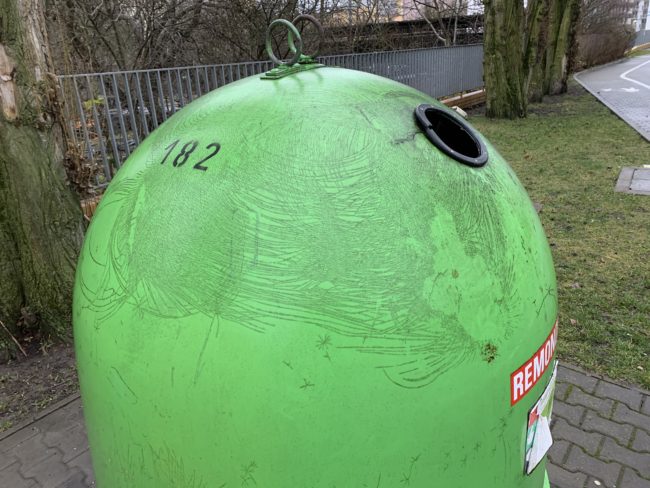 W związku z tym, że cześć pojemników jest posadowionych w miejscu widocznym i ogólnodostępnym zależało mi, aby te pojemniki ze względów estetycznych jak i higienicznych były pojemnikami nowymi. Jeden z koszy jest innego typu, w sumie wbrew zasadom magistratu. Dla nas jak widać zrobiono wyjątek. Wnioskowaliśmy o jeden kosz innego typu ze względu na prośby mieszkańców, którzy uważali, że duże i płaskie kartony łatwiej będzie wyrzucać do pojemnika metalowego, natomiast małe do pojemnika plastikowego.